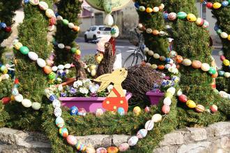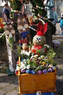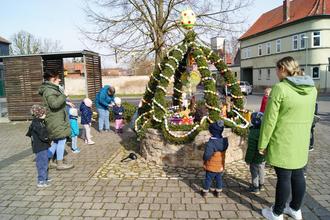 Wie schon in den vergangenen Jahren gestalteten die Körnerschen Landfrauen wieder den Brunnen am Nottertal mit einer selbst gefertigten Osterkrone mit vielen Details in vielen Arbeitsstunden. Zur feierlichen Übergabe kamen die Kinder des Kindergartens und sangen einige Lieder passend zum Osterfest.