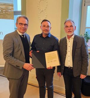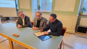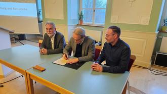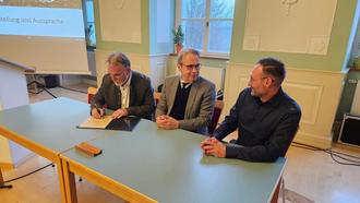 Zum Abschluss der Veranstaltung unterzeichneten Minister Maier, Landrat Zanker und ich das Gründungsdokument des Kriminalpräventiven Rates.