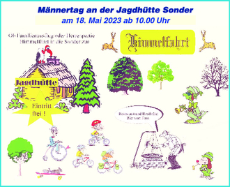 Männer, Frauen, Kinder, alle sind am 18.05.2023 ab 10 Uhr an der Jagdhütte Sonder willkommen. Für Speis und Trank ist bestens gesorgt.