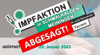 Die Kassenärztliche Vereinigung Thüringen (KVT) hat die beiden im Januar geplanten und bereits langfristig kommunizierten Termine für die Impfaktionen im Landkreis Schmalkalden-Meiningen abgesagt. Somit entfällt nach dem 6. Januar nun auch die zweite Impfaktion am 20. Januar 2023. Gegenüber dem Freien Wort (Artikel vom 4.1.2023) nannte KVT-Sprecher Matthias Streit als Grund fehlende Gelder für die Impfaktion. „Nachdem seitens des Bundes keine anteilige Finanzierung der Impfstellen über das Jahr 2022 hinaus gewährt wurde, mussten wir nun kurzfristig ebenfalls zur Kenntnis nehmen, dass durch den späten Beschluss des Landeshaushaltes unmittelbar vor Weihnachten noch keine Freigabe der notwendigen Mittel erfolgen konnte. Sobald Klarheit über die zur Verfügung stehenden Mittel besteht, soll über mögliche Ersatztermine entschieden werden.“ Hier wird das Landratsamt schnellstmöglich informieren.