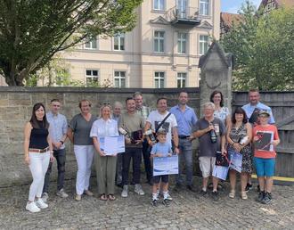 Die Preisträger des Energie-Sparpreises 2025 (1. Reihe). Die Hauptamtliche Beigeordnete Susanne Reich (hinten, 2.v.r.) überreichte die Preise zusammen mit Mitgliedern des Arbeitskreises Energie (hintere Reihe) und der für Energiethemen zuständigen Mitarbeiterin im Landratsamt Janine Töpfer (vorne, l.).