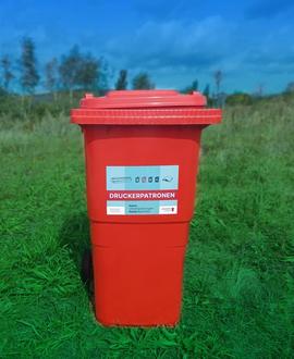 Die rote Tonne ist eine einfache Möglichkeit, leere Druckerpatronen nachhaltig sinnvoll zu entsorgen.