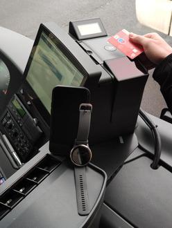 Natürlich ist auch die Zahlung mit Smartphone oder Smartwatch möglich, wenn das hinterlegte Zahlungsmittel eine akzeptierte Karte ist. Selbstverständlich ist weiterhin der Fahrscheinkauf in den Bussen mittels Bargeld gewährleistet.