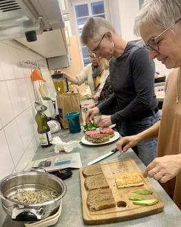 Den krönenden Abschluss der Gesundheitswoche bildete ein Kurs zum vitalstoffreichen, klimagesunden Kochen, geleitet von Ernährungsberaterin Saskia Ender. Sie litt fünf kleine Kochteams mit spannenden Rezepten für alle Mahlzeiten eines ganzen Tages an, die anschließend verzehrt werden durften.