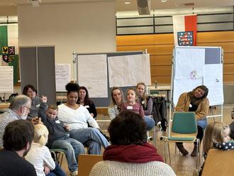 Unter dem Motto „Wenn ich einmal groß bin - Erfolgsfaktoren für einen gelingenden Übergang von der Kita in die Grundschule“ stießen die speziell für Teilhabeprozesse ausgebildeten Moderatoren Beatrix Hieronimus und Ralf Eckert einen interaktiven und ergebnisorientierten Dialog der Teilnehmenden an. Für die Kinder gab es einen speziell konzipierten Kinderworkshop, der gemeinsam mit den beiden externen Moderatoren und den Mitarbeiterinnen Jana Gross und Carolin Schwarz aus dem Fachdienst Jugend des Landratsamtes gestaltet wurde. Mithilfe selbstgemalter Bilder berichteten die Kinder, was Sie einmal werden wollen und erzählten später im Interview, wovor sie sich fürchten, wenn sie an den Wechsel auf die Grundschule denken.