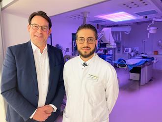 (v.l.) Univ.-Prof. Dr. Christian Schulze ist Direktor der Klinik für Innere Medizin I am Universitätsklinikum Jena. Er folgte der Einladung von Alaeldin Addas, Chefarzt der Klinik für Kardiologie am Schmalkaldener Krankenhaus, um die bestehende Kooperation im Sinne der Patienten zu vertiefen und den Austausch unter den Kolleginnen und Kollegen voranzutreiben.