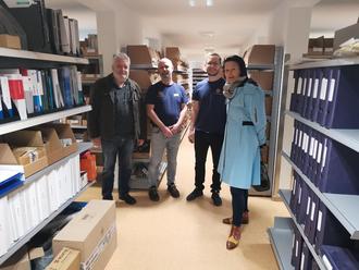 Anschließend besuchte die Landrätin mit ihren Begleitern die Firma Heizungsbau Günther im Ortsteil Unterweid. Geschäftsführer Thomas Günther, seit 1999 selbständig als Meister im Heizungs- und Lüftungsbau sowie Gasinstallationstechniker, präsentierte stolz seine neuen Betriebsräume. Diese befinden sich im liebevoll sanierten ehemaligen Gemeindehaus von Unterweid. Die Landrätin zeigte sich beeindruckt von der hochwertigen Sanierung der Büroräume, des Lagers und der Sanitäreinrichtungen.