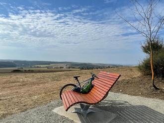 Zahlreiche Projekte zur touristischen Aufwertung der Rad- und Wanderwege konnten mit Hilfe der Förderung des Landkreises Schmalkalden-Meiningen in den vergangenen Jahren bereits realisiert werden – wie hier im Bild eine Panoramaliege an der Grabfeld-Radroute zwischen Schwickershausen und Nordheim.