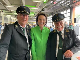 Besonders ins Auge fielen auch die adrett gekleideten Busfahrer, die - wie hier auf dem Foto mit Landrätin Peggy Greiser - mit viel Charme und Engagement zur gelungenen Atmosphäre beitrugen.