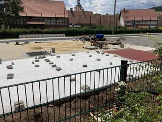 An der Grundschule Herpf nimmt die neue Außensportfläche zunehmend Gestalt an.