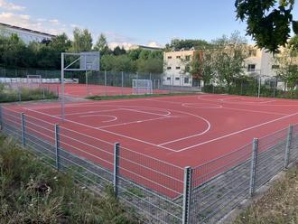Erneuerung von Spielfeldbelag, Toranlagen und Zaunreparaturen an den Sportflächen des Henfling-Gymnasiums am Standort des Landratsamtes Haus 4.