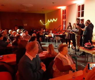 Zu einem stimmungsvollen, vielseitig bunt gemischten Programm luden die Neunbrunnvokalisten unter Leitung von Axel Amm am 1. Weihnachtsfeiertag in den kleinen Saal des Gießübler Kulturhauses ein.