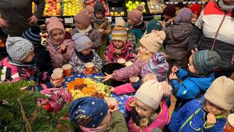 Und - ebenso traditionell - haben die Kinder mit den Erziehern den Weihnachtsbaum im tegut geschmückt.
