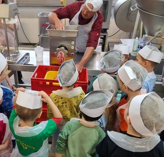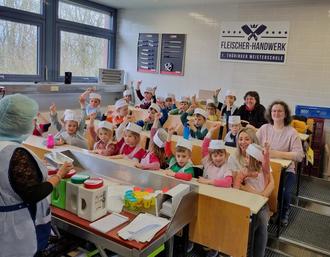 Wir schnupperten die Gewürze, rochen das Fleisch, kneteten Würstchen aus Knete zur Probe, genossen den Duft am heißen Grill und durften natürlich auch die fertigen Bratwürste aufessen.