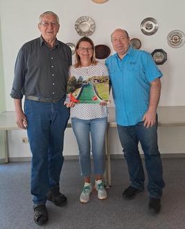 v.l.n.r. Vors. des SV Biberau Herr Witter, Vorstandsmitglied Frau Schlossareck, Bürgermeister Herr Schilling