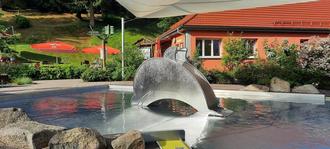 Die Freude auf die kommende Badesaison wurde mit einer neuen Rutsche geweckt, die die Form eines Delfins hat.