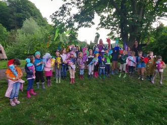 Das ließen sich die Kinder nicht zweimal sagen und machten sich mit ihren Erzieherinnen auf eine lange Reise. Unterwegs mussten viele schwierige Aufgaben gelöst werden, die nur gemeinsam zu schaffen waren. Bei jeder geklärten Aufgabe gab es eine „Belohnung". Doch leider konnte niemand etwas damit anfangen ...