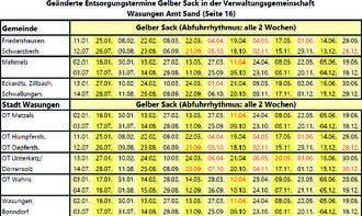 nach dem Druck der Abfallentsorgungskalender 2023 wurden leider Fehler in den Entsorgungsterminen festgestellt. Untenstehend sehen Sie die Korrekturtermine für die betroffenen Orte. In der Abfall-App und im Online-Entsorgungskalender (unter www.kwsm.de) sind die geänderten Termine bereits berücksichtigt.