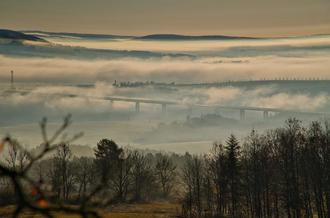 Der Morgen blickt so traurig, Sonnenschein hat sich versteckt, die Nebelwand wirkt schaurig, hat die Landschaft grau bedeckt.