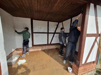 So wurden Müll und Unrat eingesammelt, Elektrokästen sauber gemacht, Straßen und Containerplätze gefegt, Bänke abgeschliffen, Geländer geschweißt und gestrichen, Blumenkübel bepflanzt, der Osterbrunnen geschmückt, das Sportgebäude und die Bushaltestelle wurden gestrichen und Mülleimer bemalt!