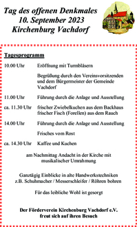 In diesem Jahr, zum Tag des offenen Denkmales öffnet sich auch wieder das Tor der Kirchenburganlage in der Gemeinde Vachdorf für interessierte Besucher. Nach einem Neustart des Vereines im letzten Herbst, wollen die Mitglieder einen kleinen Einblick in die Vereinstätigkeit geben.