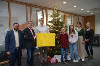 Die Bankmitarbeiter stellten die Wunschzettel auf Maria Rosenberg zur Verfügung, wo die Kids ihren jeweiligen Wunsch aufschreiben konnten. Danach wurden die Wunschkärtchen an den Baum gehängt. Die Kunden und auch die Mitarbeiter konnten dann einen dieser Zettel entnehmen und das Gewünschte besorgen und spenden. Die Geschenke im Kostenrahmen von je ca. 20 Euro wurden dann am 20. Dezember einer kleinen Delegation aus Maria Rosenberg in den Geschäftsräumen überreicht. Nach einer kleinen Stärkung mit einer Süßigkeit und einem Getränk bedankten sich die Kinder für das erneute Engagement vor Ort. Sie hatten, wie in den Jahren davor wieder ein großes Plakat kreiert, das dann auch erneut einen Ehrenplatz in den Geschäftsräumen erhalten wird.