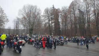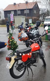 …..im Sommerhalbjahr ist das bekannt, aber am 24. Dezember, bei widrigen Wetterbedingungen, manchmal bei Schnee und Eis oder wie im vergangenen Jahr bei starken Windböen und Dauerregen? Genauso ist es aber! Bereits seit rund drei Jahrzehnten kommen hier immer an Heiligabend ungefähr 200 Biker um die Mittagszeit zusammen, wie es auch diesmal vor zwei Wochen wieder der Fall war. Eine schöne Tradition hat sich so über die Jahre herumgesprochen und wird wohl auch weiterhin noch viele Jahre beibehalten.