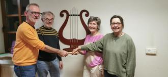 Der Staffelstab wird übergeben. v.l. Bernhard Simon, Walter Fuchs, Bettina Justus, Jutta Rutz