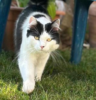 Er ist Freigänger und spaziert duch das Dorf. Er braucht Spezialfutter, erbettelt sich aber in anderen Häusern Futter, was ihm besser schmeckt, er aber nicht verträgt. Bitte auf keinen Fall füttern!