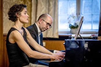 Sie beherrschend das vierhändiges Klavierspiel par excellence: Christine und Stephan Rahn. Am Freitag, 5. April 2024, sind sie mit ihrem Programm „Beziehungsweise“ im Forum Alte Post zu Gast. (Foto: Frank Schindelbeck)