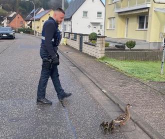 Waldfischbach-Burgalben (ots) Durch eine aufmerksame Bürgerin wurde am Morgen des 05.04.2024 festgestellt, dass eine Entenmutter mit drei Küken in der Alleestraße in Waldfischbach-Burgalben wild am Fahrbahnrand umherlief und sich nicht mehr von der Örtlichkeit entfernte. Bei einer Nachschau konnte sie drei weitere Küken in einem Kanalschacht entdecken, die offenbar bei dem Ausflug hineingefallen waren und sich nicht mehr befreien konnten. Die drei Küken konnten aus dem Kanalschacht gerettet und der Entenmutter wieder zugeführt werden. Unter einer kurzzeitigen "Vollsperrung" der Straße wurde der 7-köpfigen Großfamilie das sichere Überqueren der Fahrbahn und der weitere Weg in Richtung Schwarzbach ermöglicht.