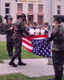 Ende einer Ära: Mit dem feierlichen Fahnenappell am 31. Juli 1997 verliert Pirmasens seinen Status als Garnisonsstadt. (Foto: Sammlung Stadtarchiv)