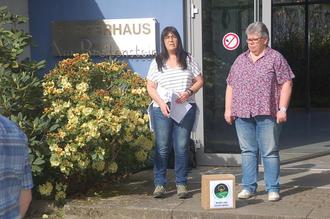 v.links: Marika Vatter und Sabine Käfer beim Auftakt zur Wandertour am Mittwochvormittag