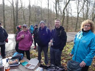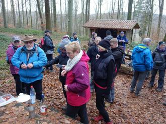 Mittwoch, 28. Dezember, bewölkt, trocken, 6 Grad Celsius… Ideale Bedingungen für die Abschlusswanderung des Heimatvereins Heltersberg. Wanderführer Fred Bissbort durfte dementsprechend dann auch 23 Wanderfreunde am Vereinsheim ‚Am Zimmerkopf‘ begrüßen. Von hier ging es auf einer 13 km langen Rundwanderung zuerst Richtung Waldfischbach durch das Weihertal.