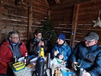 Trotz der schlechten Wettervorhersage für den 28. Dezember trafen sich 11 Wanderwillige am Vereinsheim am Zimmerkopf. Wanderführer Klaus Feller hatte sich eine 13km lange Tour durch den heimischen Wald ausgedacht. Vom Vereinsheim ging es am Kreuzstein vorbei zur ersten Rast an der „Bushaltestelle“, dann durch den Wadgasser Wald, hinunter ins Schwarzbachtal mit anschließendem Aufstieg zur Heidelsburg. Auf dem Plateau der Heidelsburg angekommen konnten die übergroßen geschichtsträchtigen Mauersteine des Ältesten Forstamtes Deutschlands bestaunt werden. Unweit davon wurde die festlich geschmückte Schutzhütte Heidelsburg als Hauptraststation in Beschlag genommen. Der mittlerweile eintretende Regen konnte den Wanderinnen und Wanderern somit nichts anhaben. Gut gestärkt ging die Tour anschließend weiter Richtung Heltersberg. Über die Sommerdelle, Gerstendelle, Finstersteige und den Herrgottspfad erreichte man schließlich wieder das HVH Vereinsheim. Hier wurden die Teilnehmer und Teilnehmerinnen von Bärbel und Wolfgang Weißmann beköstigt.