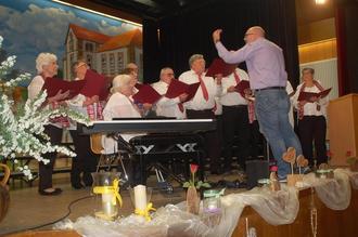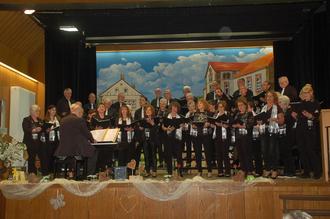 Rund 40 Sängerinnen und Sänger vom Heltersberger Chor präsentierten sich eindrucksvoll auf der Bühne