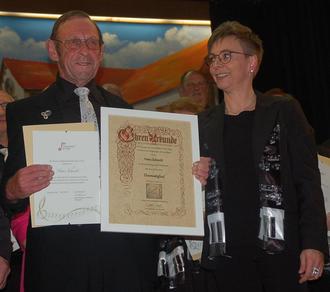 Hans Schmitt wurde von der Vereinsvorsitzenden Nathalie Faust mit der Verleihung der Ehrenmitgliedschaft überrascht