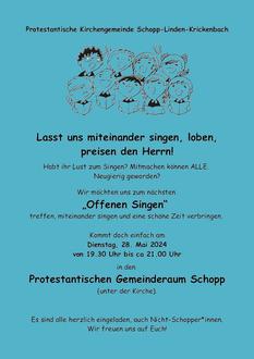 Kontakt: Prot. Pfarramt, Waldstr. 12, 67707 Schopp, Tel. 06307/395, e-mail: pfarramt.schopp@evkirchepfalz.de.