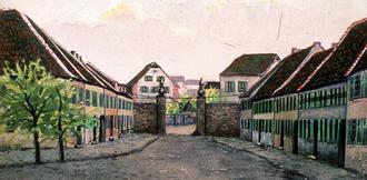 „Flüchten zwecklos“ – Die Stadtmauer von Pirmasens. Das Aquarell von Ernst Martin zeigt das einstige Zweibrücker Tor. (Foto: Sammlung / Stadtarchiv)