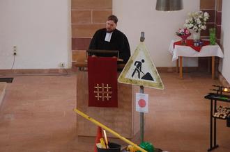 Pfarrer Philipp Loos sprach zum im übertragenen Sinn zum Thema "Baustelle Kirche"