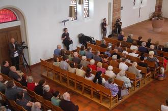Ein nicht alltäglicher Anblick: Das SWR bei Dreharbeiten in der Kirche