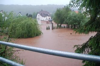 Das gesamte Tal im Ortsteil Burgalben stand wie eine Seenlandschaft unter Wasser