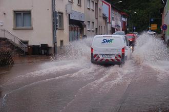 Der Starkregen am 16. und 17. Mai verursachte auch in unserer Verbandsgemeinde große Schäden durch Überflutungen. Insbesondere war der Ortsteil Burgalben, ab den Bruchwiesen wo Moosalbe und Schwarzbach zusammenfließen, betroffen. Seit Jahrzehnten waren solche Überflutungen auch nur annähernd nicht mehr in Erinnerung. Im weiteren Verlauf des Schwarzbaches ab Thaleischweiler-Fröschen und in Richtung Saarland konnte man sogar von einem 100jährigen Hochwasser sprechen. Heftigste Regenfälle in der Nacht und dem darauffolgenden Freitag sorgten für zahllose Einsätze nicht nur der Feuerwehren. Im Schwarzbachtal nahe des Clausensees musste ein DLRG-Zeltlager evakuiert werden und 130 Personen verbrachten die Nacht auf Feldbetten in der Bruchwiesenhalle. Nach anfänglichen Befürchtungen war die Schadenslage an der überfluteten Kläranlage im Ortsteil Moschelmühle, wo ebenfalls landunter herrschte, dann doch nicht so groß wie befürchtet. Die Anlage arbeitete im Notbetrieb weiter.