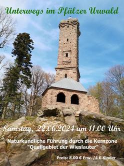 Im Jahr 1998 wurde das Biosphärenreservat Pfälzerwald Nordvogesen als erstes grenzübergreifendes Biosphärenreservat der EU durch die UNESCO ausgewiesen. 3 % seiner Gesamtfläche sind Kernzonen. Hier entsteht langsam wieder Urwald. Begleiten Sie mich in den größten entstehenden Urwald des Biosphärenreservates Pfälzerwald-Nordvogesen, in die Kernzone „Quellgebiet der Wieslauter“ und erhalten Sie spannende, und wissenswerte Informationen über unseren Wald, seine Artenvielfalt und über unser wichtigstes Gut: unser Trinkwasser. Wie wirkt sich der Klimawandel auf die Artenvielfalt aus? Wie wirken sich eingeschleppte Tier- und Pflanzenarten auf unsere Natur aus. All diesen Fragen werden wir gemeinsam auf den Grund gehen. Am Ende der Tour genießen wir dann den Blick vom Luitpoldturm auf die atemberaubende Landschaft des Biosphärenreservates Pfälzerwald-Nordvogesen. Anmeldung unter gabi@martin-ps.de oder 0151/55 93 66 15 unbedingt erforderlich!