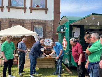 Bürgermeister Felix Leidecker und Ortsbürgermeister Peter Seibert beim Fassanstich.