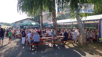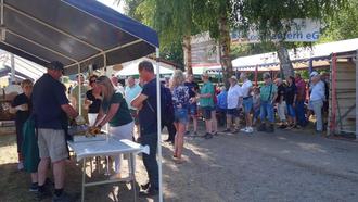 24. Juni, Sommerfest beim HVH an der Vereinshütte Am Zimmerkopf. Traditionell mit Hähnchen über offener Buchenholzglut zubereitet und dem „Schneiderschen Geheimgewürz“ eingepinselt. Ab 15:00 Uhr kamen schon die ersten Gäste um den Platz dann kurz vor der Hähnchenausgabe zu stürmen. So wunderte sich niemand, dass die erste Charge Hähnchen schon nach kurzer Zeit ausverkauft war, aber es gab ja noch die zweite Ausgabe, leider etwas verspätet, gegen 20:15 Uhr. Auch diese Hähnchen waren schon nach kurzer Zeit an den Mann, bzw. Frau, gebracht. Wer dann noch Hunger hatte, oder keine Lust auf Hähnchen, fand Würstchen vom Grill und lecker Flammkuchen aus dem Holzofen vor, natürlich mit Kaffee und Kuchen abgerundet. Auch an die vielen Kinder wurde mit einer Hüpfburg und Ponyreiten gedacht. Musikalisch untermalt wurde das Ganze von Rosi und Franz, die mit ihrem Gespür für die richtige Musik zum richtigen Zeitpunkt die Besucherinnen und Besucher sogar zum Tanzen animierten.