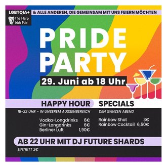 Mit Regenbogencocktails und queeren Tanzklassikern feierte am vergangenen Donnerstag die queere Community Kaiserslauterns im Irish-Pup „The Harp“ die erste Pride Party der Stadt. In entspannter Atmosphäre konnten zahlreiche Menschen verschiedenen Alters, unterschiedlicher Herkunft, Geschlechtsidentität, sexueller Orientierung sowie Menschen, die sich nicht der queeren Community zuordnen, diese jedoch unterstützen –sogenannte Straight Allies* – ausgelassen feiern.
