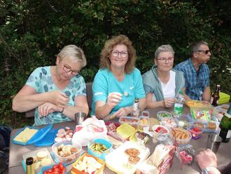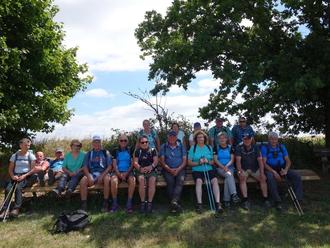 Den Titel bester Wanderführer 2022 dürfte sich Erich Sester mit seiner Rundtour am 10. Juli wohl schon frühzeitig im Jahr gesichert haben. Von Heimkirchen ging es auf den 13 km langen Naturlehrpfad „Alte Welt“. Fauna und Flora genießen in einer einzigartigen Kulturlandschaft hieß die Devise. Ob Insektenhotel, Lesesteinhaufen, Bienenschaukasten, Benjeshecke, Trockenmauern, Vogelschutzhecke oder die vielen Blühstreifen, überall galt es kleinere und größere Naturschauspiele zu entdecken. Das ganze gewürzt mit Aussicht, Aussicht und nochmals Aussicht. Nicht zu vergessen die überdimensionale Sonnenuhr mit dem solar betriebenen Kühlschrank, oder das Bauernmuseum der Familie Pfleger auf dem Holbornerhof, auch hier mit Kaltgetränkeverköstigung. Selbst an einen Handbesen zum Bänke fegen hatte Erich gedacht. Zum Abschluss noch in die Gaststätte Zum Kuckuck in Heltersberg und die 18 Wanderer waren begeistert.