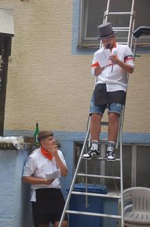 Am Sonntagnachmittag kam die Straußjugend mit dem wirklich gigantischen Kerwestrauß zum Sportheim, wo dieser mit großer Anteilnahme der Bevölkerung aufgestellt wurde. Das Besondere daran war, dass der Strauß auch noch gefüllt war um zahlreiche durstige Kehlen befriedigen zu können. An diesem wirklich imposanten und sichtlich mit viel Fleiß und Liebe kreierten Strauß hat man mit Sicherheit viele Wochen oder gar Monate gearbeitet! Hier wurde dann auch die „Kerweredd“ vorgetragen, die wie in einem Dorf üblich, wieder zahlreiche skurrile, aber wahre Geschichten den Wissenden noch einmal ins Gedächtnis rief.