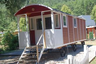 Direkt am See werden die beiden Zirkuswagen der Moosalbtaler mit jeweils bis zu vier Schlafplätzen gerne gebucht